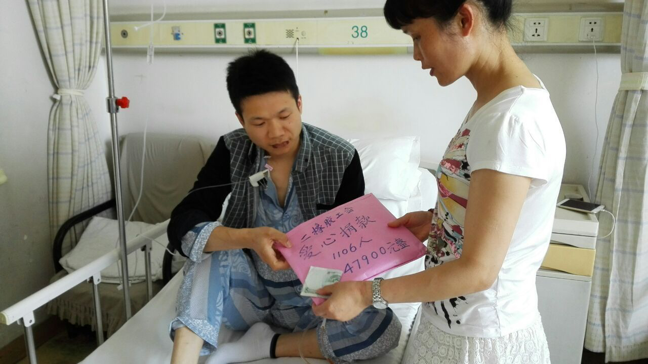 2015年4月中旬,公司膠圈車(chē)間員工于某在公司組織的健康體檢中,不幸被查出患有肝癌,已達(dá)中期,必須立即住院進(jìn)行手術(shù)治療。于某年僅29歲,妻子也在本公司工作,夫妻兩人從外地來(lái)錫打工,在公司工作的5年期間,工作踏實(shí)、為人和善,高昂的治療費(fèi)用對(duì)于這樣一個(gè)年輕的家庭來(lái)說(shuō)是一筆不小的數(shù)目。公司工會(huì)了解到于某的困難后,立即撥款對(duì)他表示了慰問(wèn),并向全體員工發(fā)出了“愛(ài)心捐款倡議書(shū)”,在5月上旬組織了愛(ài)心捐款活動(dòng)。
